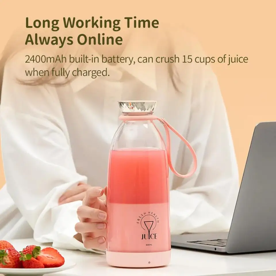 Leve praticidade para onde você for com o Mini Liquidificador Portátil 500ml! 🌟